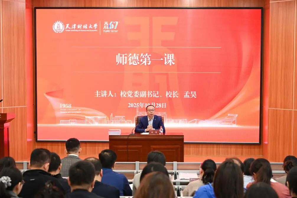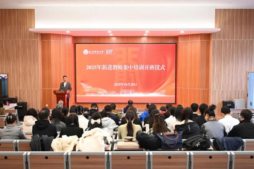 为深入学习贯彻学校第三次党代会精神,全面实施“优教强师行动”,教育引导新进教师夯实思想根基、涵养高尚师德,提升专业素养、锻造过硬本领,传承天财精神、加快角色转变与岗位融入,10月28日上午,天津财经大学2025年新进教师集中培训开班仪式在综合楼报告厅隆重举行。校党委副书记、校长孟昊,副校长李新涛,各专业学院主要负责同志以及2025年全体新进教师参加仪式。仪式由副校长李新涛主持。
