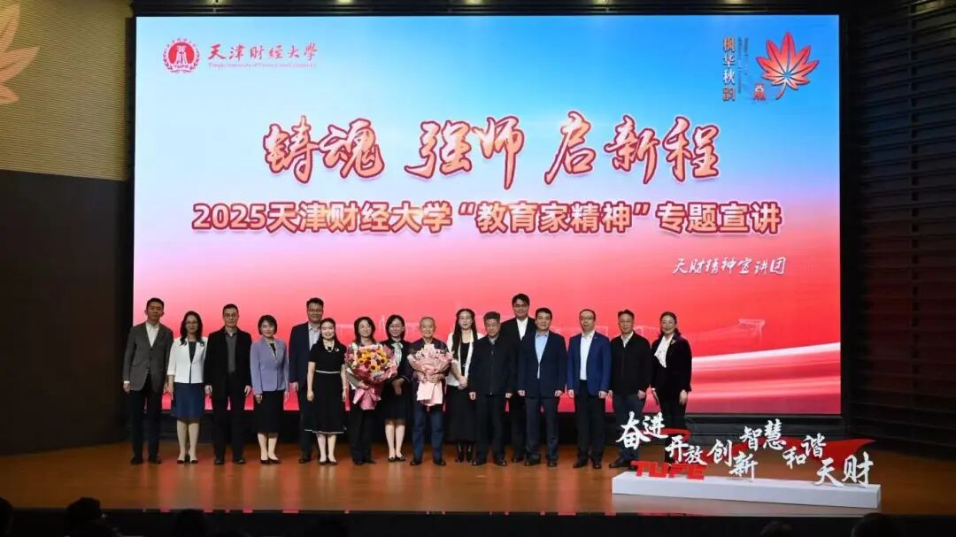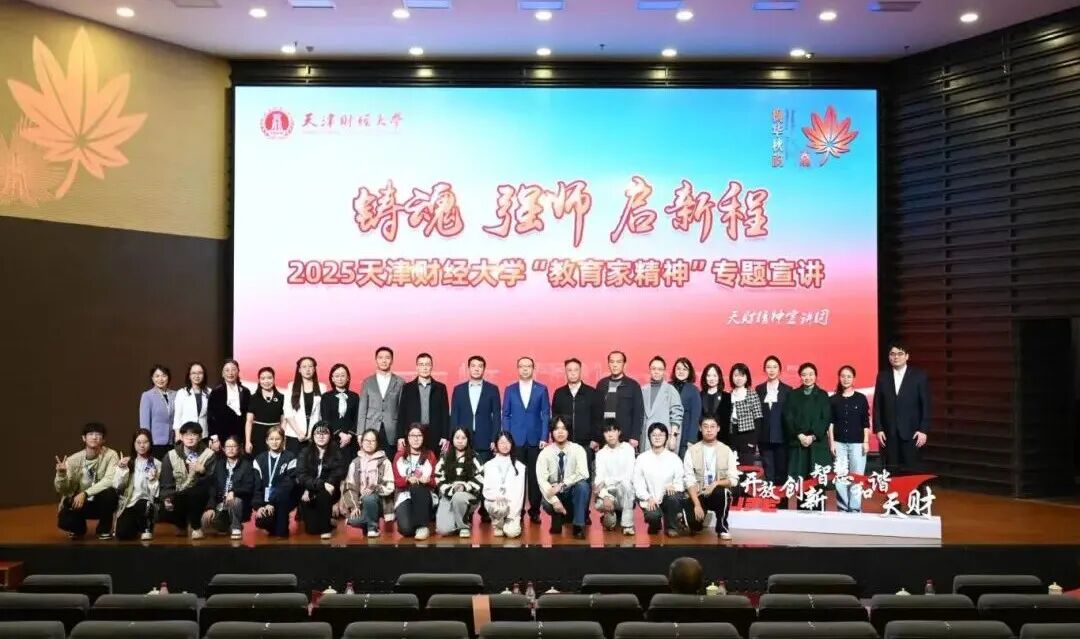 杏坛铸魂担使命,强师兴教启新程!在全国上下深入学习贯彻党的二十大精神、全面落实党的二十届四中全会战略部署,在建校67周年的喜庆氛围里,11月7日下午,我校隆重举办“铸魂 强师 启新程”——“教育家精神”专题宣讲活动!校领导赵鸣、孟昊、马岩、陈连胜、李新涛,各基层党委(直属党总支)书记、各职能部门负责人、新进教师及广大师生代表出席本次活动。活动紧扣立德树人根本任务,以一代代天财教育者躬耕杏坛的坚守、乐教爱生的热忱为底色,串联起深耕育人的初心故事与新时代强师兴校的奋进篇章,感召广大天财人传承教育家精神,立为党育人、为国育才的鸿鹄之志,以信仰筑牢教育根基,以奋斗为天财建校67周年波澜壮阔的发展历程献礼!